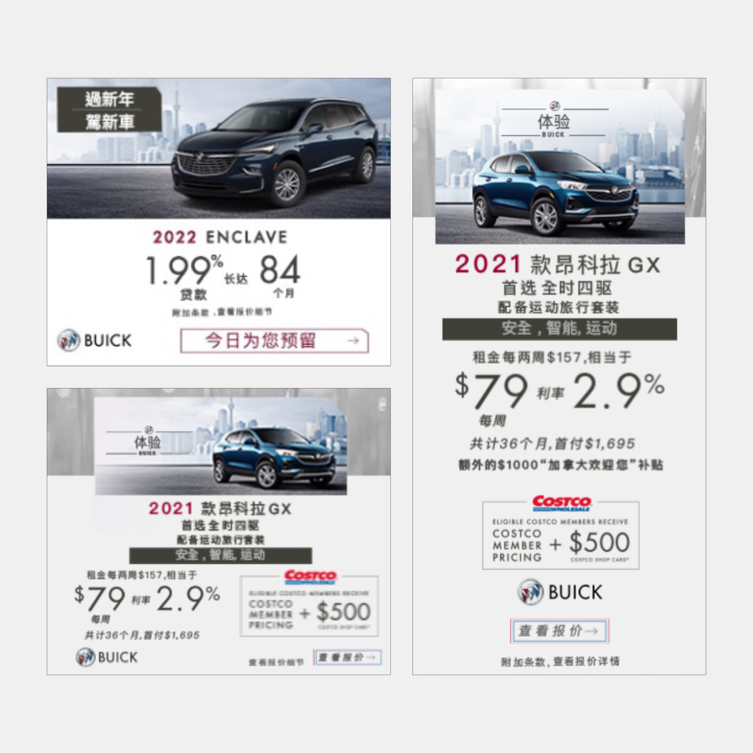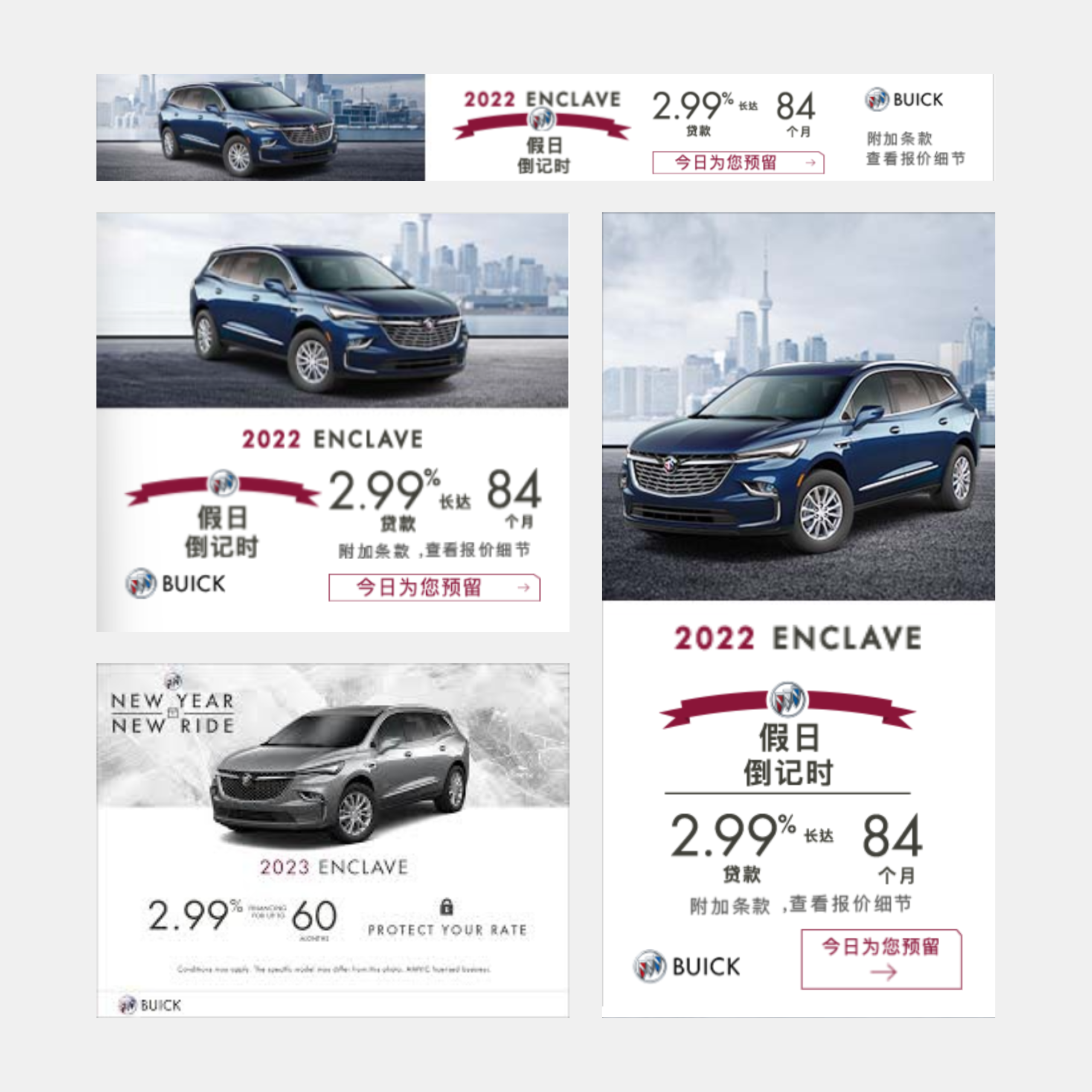 To solidify Buick’s resonance within Canada’s Chinese communities, we engineered a sophisticated, multi-tier acquisition framework. Our mandate: bridge the cultural divide through localized narratives, transforming high-intent digital engagement into physical dealership traffic for the Enclave and Encore nameplates, while optimizing brand equity across corporate, association, and individual dealer levels.